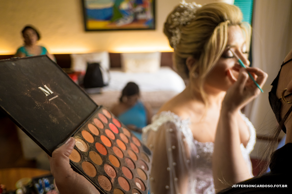 Os noivos estavam radiantes e não faltou animação durante a preparação para o grande dia. As risadas, brincadeiras e troca de histórias fizeram o tempo voar enquanto eles se arrumavam para o momento mais esperado de suas vidas.