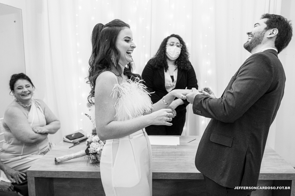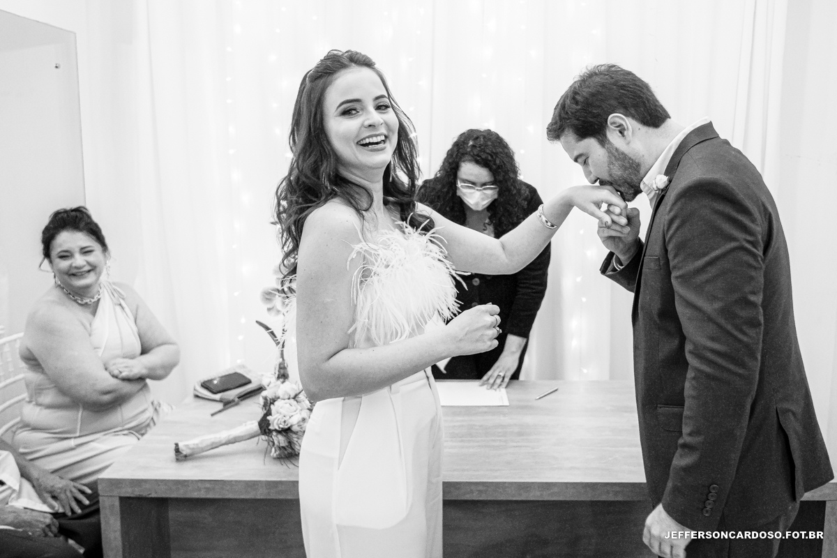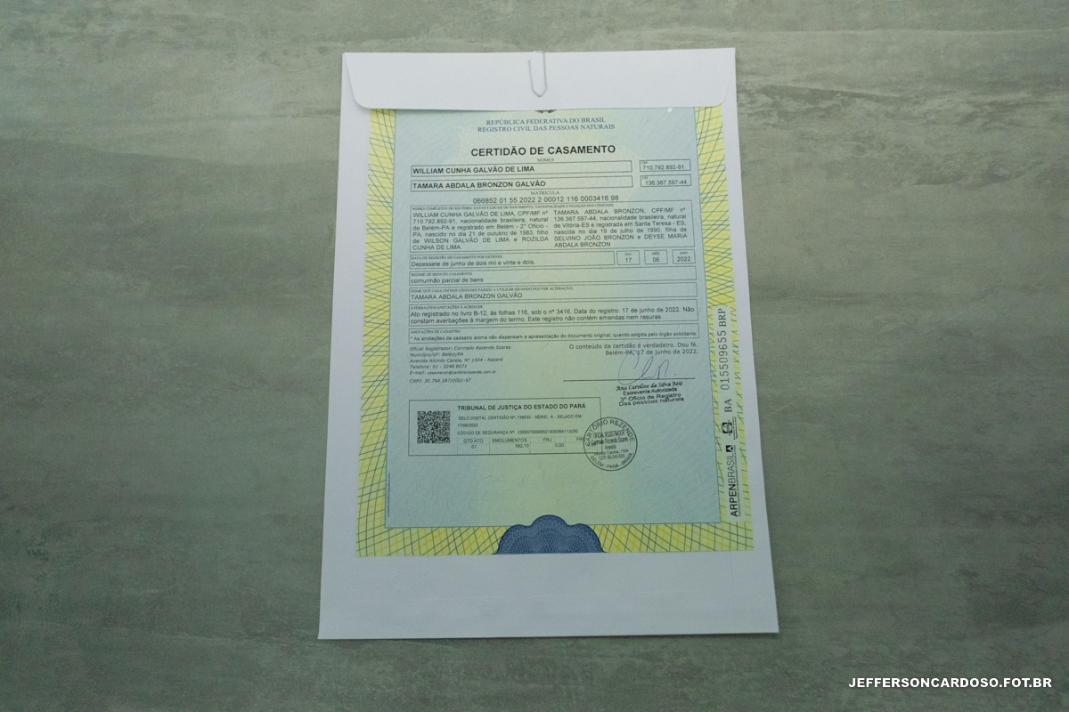 Foi no cartório de Belém que o amor desses dois pombinhos foi oficializado perante a lei. Foi um dia muito especial, emocionante e inesquecível. Mas a verdadeira festa aconteceu no salão de festas do prédio, onde familiares e amigos se reuniram para celebrar a união desses dois apaixonados.
