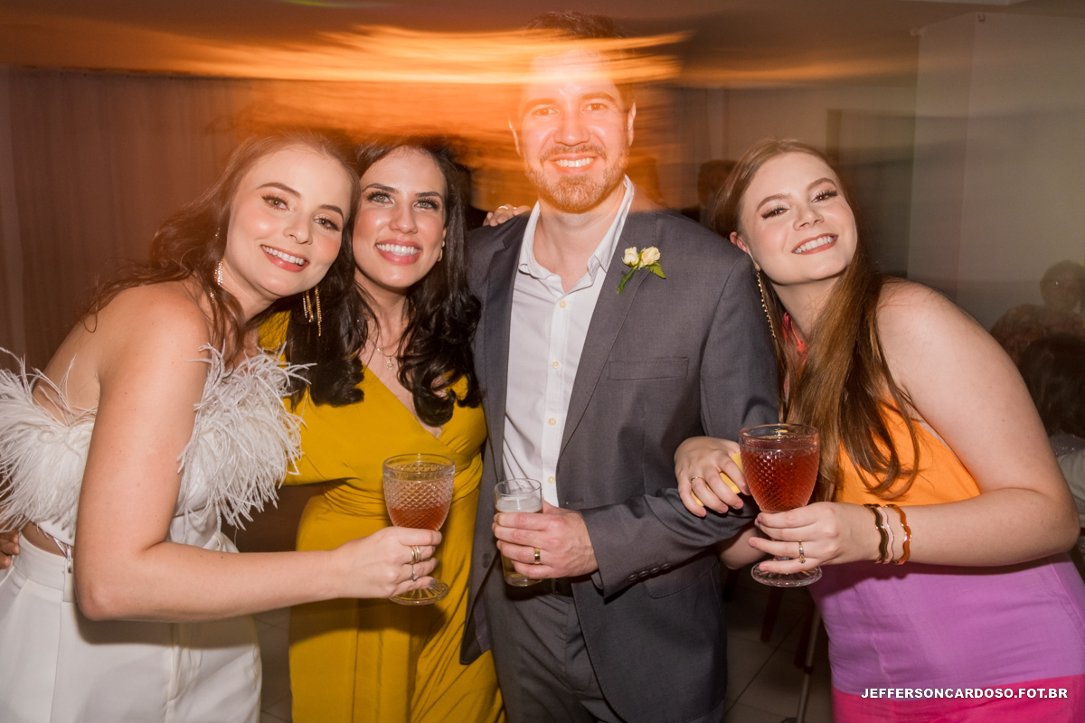 A festa foi incrível! O clima era tão intimista que parecia que todos os presentes se conheciam há anos. Teve música, teve comida deliciosa e, é claro, muito amor no ar. Os noivos estavam radiantes, sorridentes e transbordando felicidade. E quem estava lá não poupou elogios à organização, que conseguiu transformar um simples salão em um ambiente tão aconchegante e romântico.